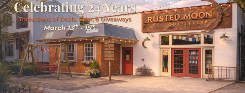 Join us this weekend at the shop and help celebrate 24 years of Rusted Moon Outfitters.